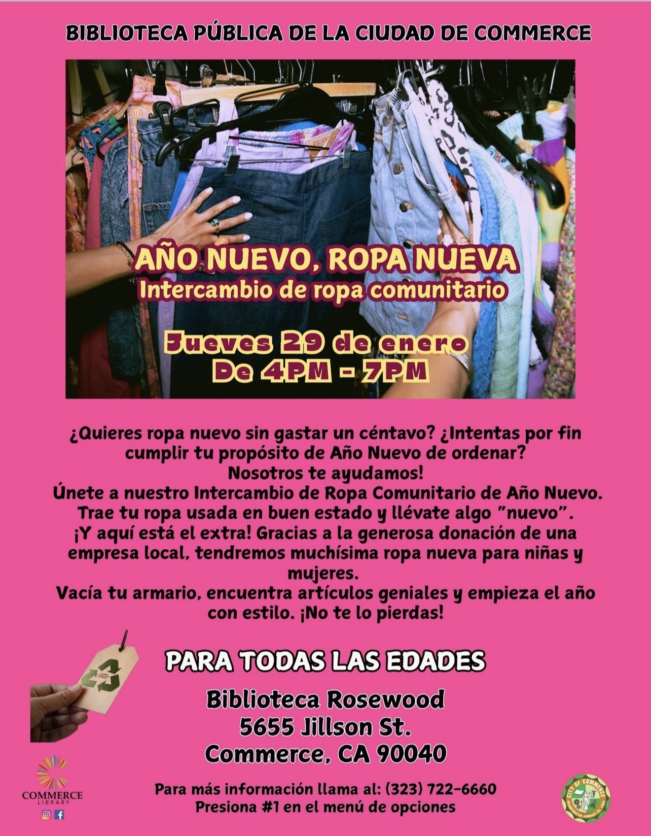 And here's the bonus! Thanks to the generous donation of a local company, we'll have tons of brand-new girls' and women's clothing up for grabs. Clear out your closet, score some great finds, and kick off the year in style.