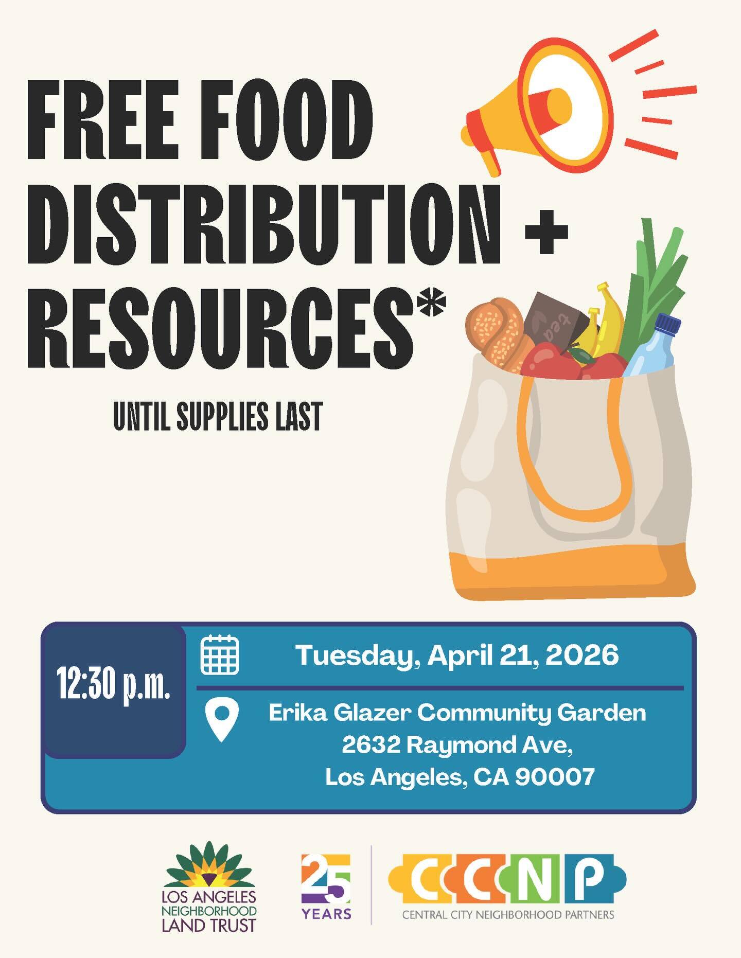 Free Food + Resources until supplies last!Date: 04.21.2026
