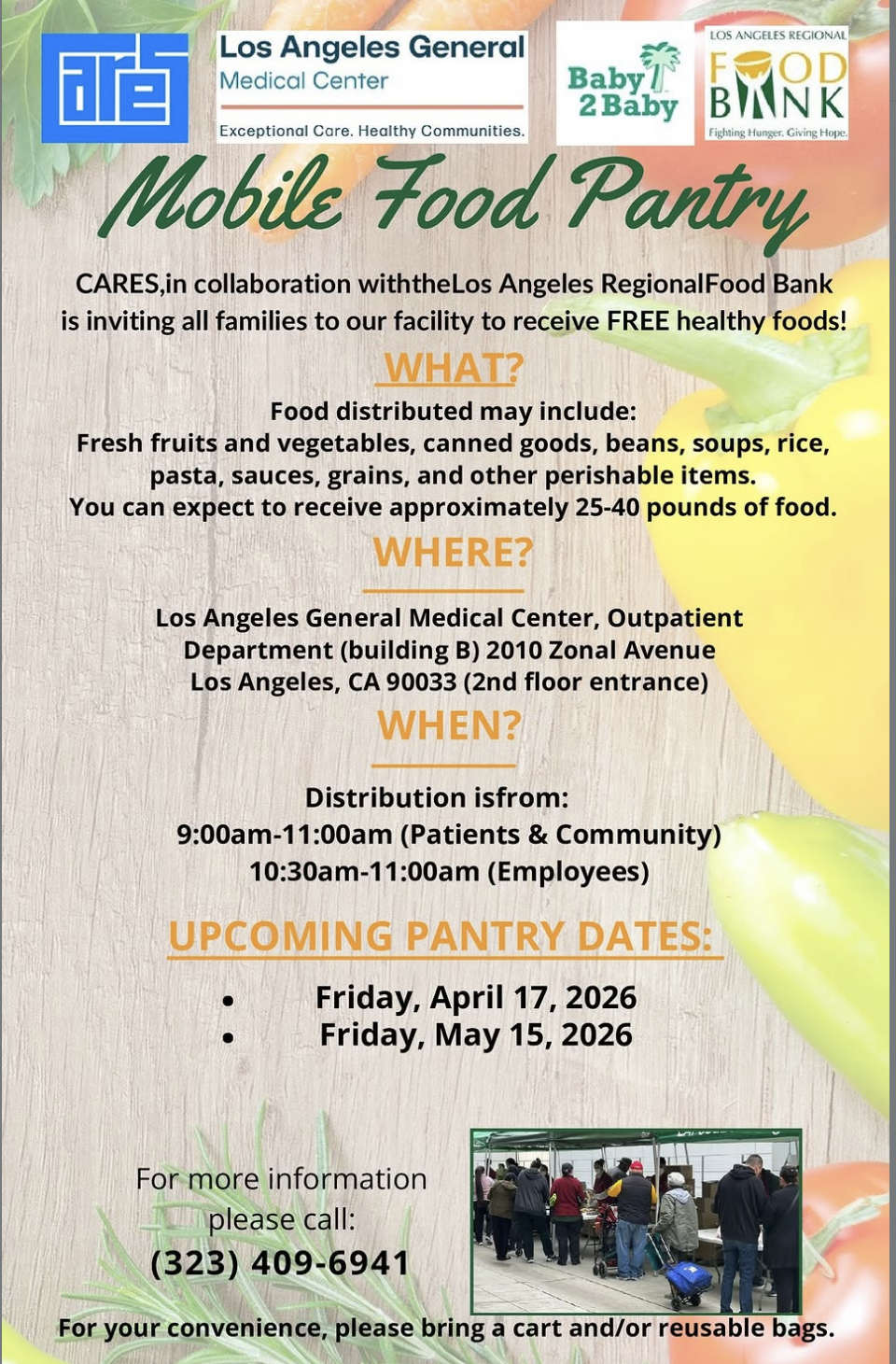CARES, in collaboration with the Los Angeles RegionalFood Bank is inviting all families to our facility to receive FREE healthy foods!