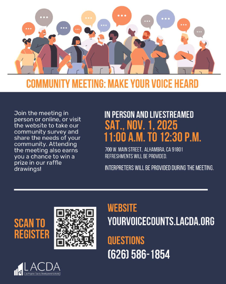 Join the meeting in person or online, or visit the website to take our community survey and share the needs of your community. Attending the meeting also earns you a chance to win a prize in our raffle drawings!