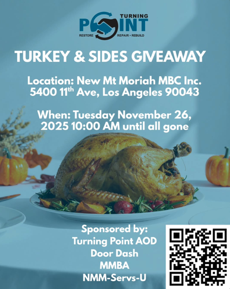 Turkeys will be distributed on a first come, first served basis while supplies last. Scan the QR code on the flyer to register.