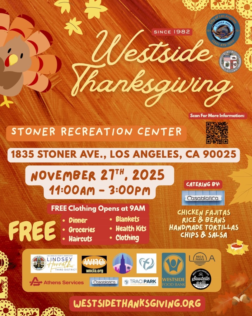 2025 Westside Thanksgiving Celebration – This Thanksgiving Day, Westside Thanksgiving is delivering a warm meal, fellowship, and gratitude with our neighbors.