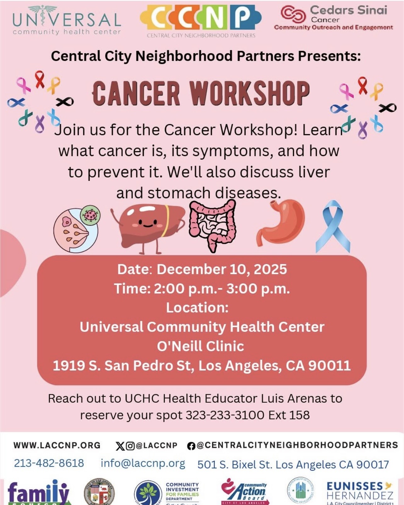 Reach out to UCHC Health Educator Luis Arenas to reserve your spot 323.233.3100 Ext. 158